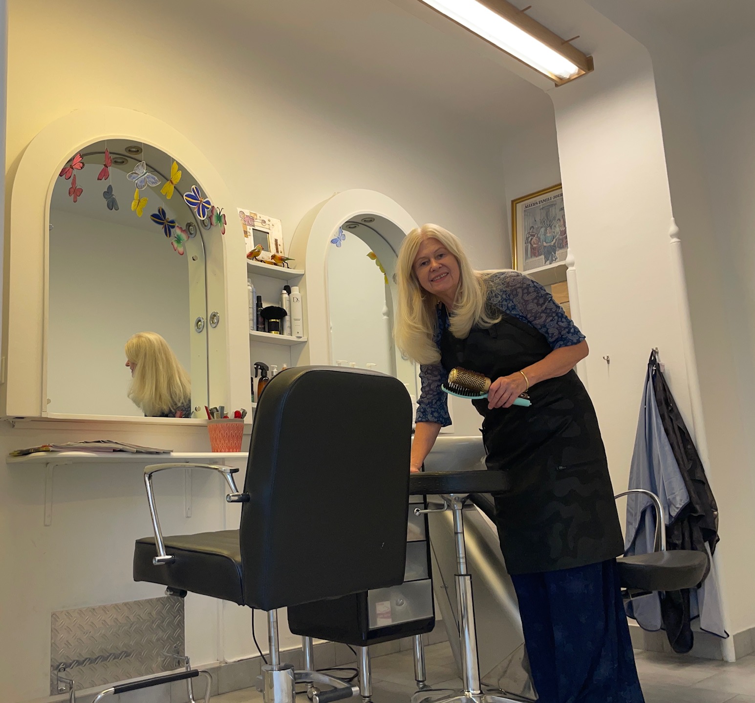 Här på Hälsingegatan 17 i Vasastan, Stockholm hyr jag stol sedan många år. Jag klipper, färgar och stylar både damer och herrar. Min styrka är min mycket långa yrkeserfarenhet, det absolut viktigaste för ett hantverksyrke, till vilket frisörer räknas! Läs mer om mig och min bakgrund här.